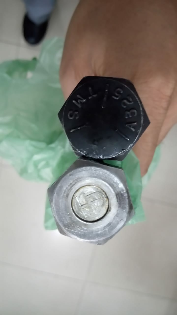 2. long bolt A325, baut A325berbahan baja berwarna hitam dimana kepala baut segi enam dan menyatu dengan diameter baut, membuatnya lebih kuat dan kokoh dari long bolt unc, dan juga harganya yang lebih mahal dari long bolt unc